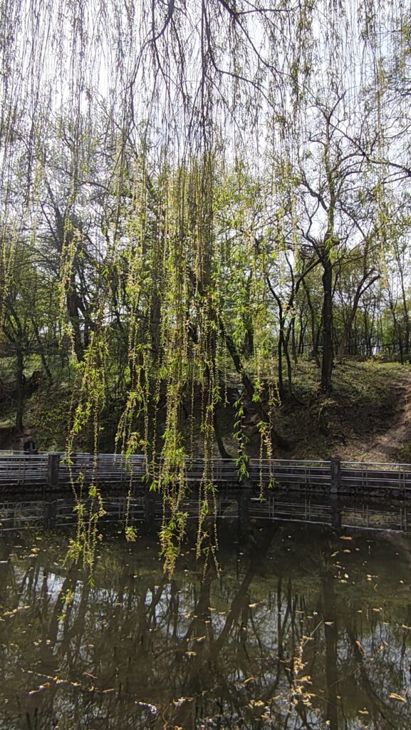 Privind mai aproape, prin reflexia sălciilor pletoase, peștii desenează umbre argintii printre nuferi. E o agitație tăcută, o curgere continuă care îți fură privirea și îți golește mintea de griji.